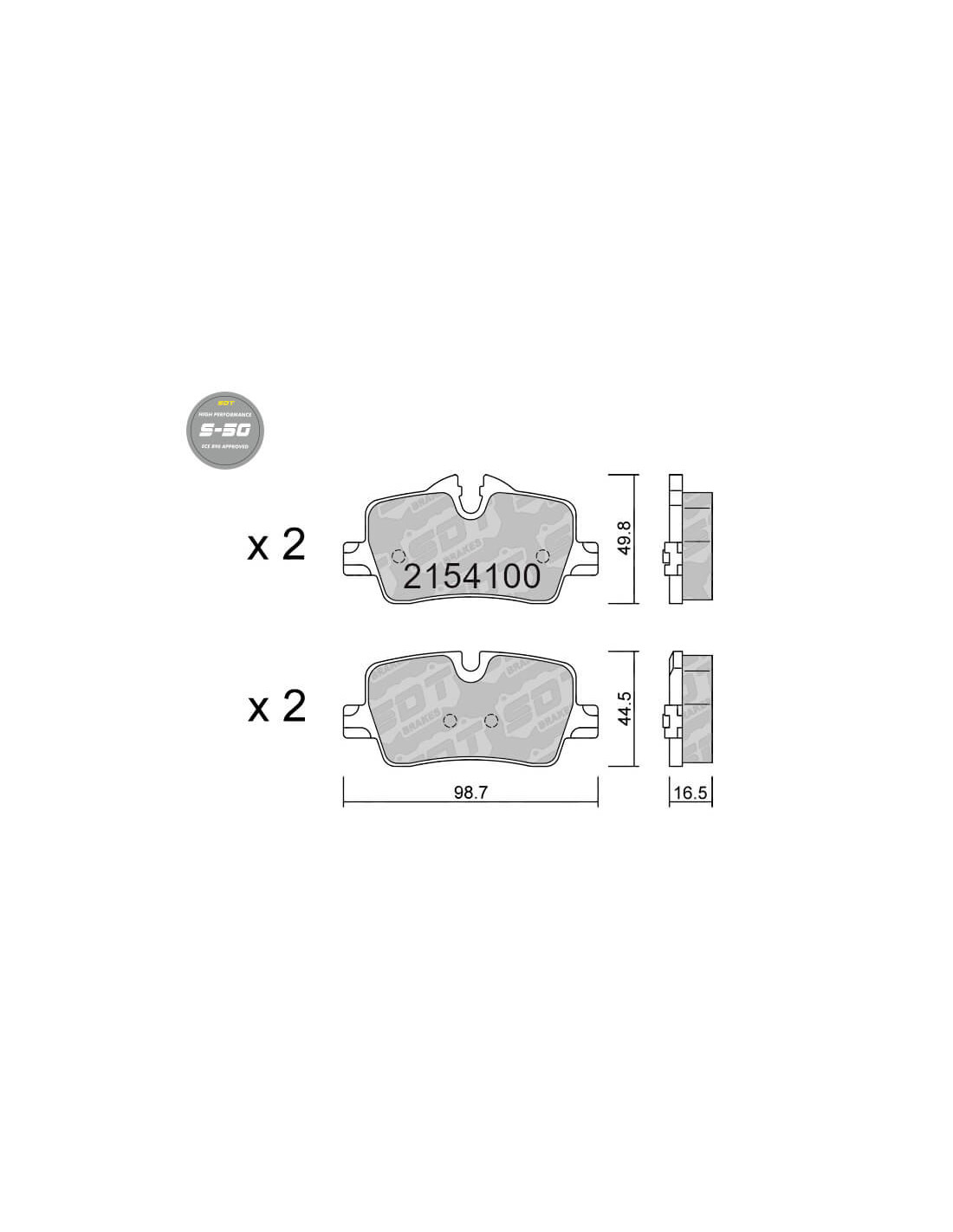 SDT BRAKES with our High Performance S50 brake pads we obtain a high coefficient of friction and a great bite., has taken another step forward by developing this sustainable and state-of-the-art product, removing any substances that may be harmful for the environment. There is no use of copper, nickel or any other polluting product. We have even gone the extra mile by reaching level N of the “Leaf Mark”.