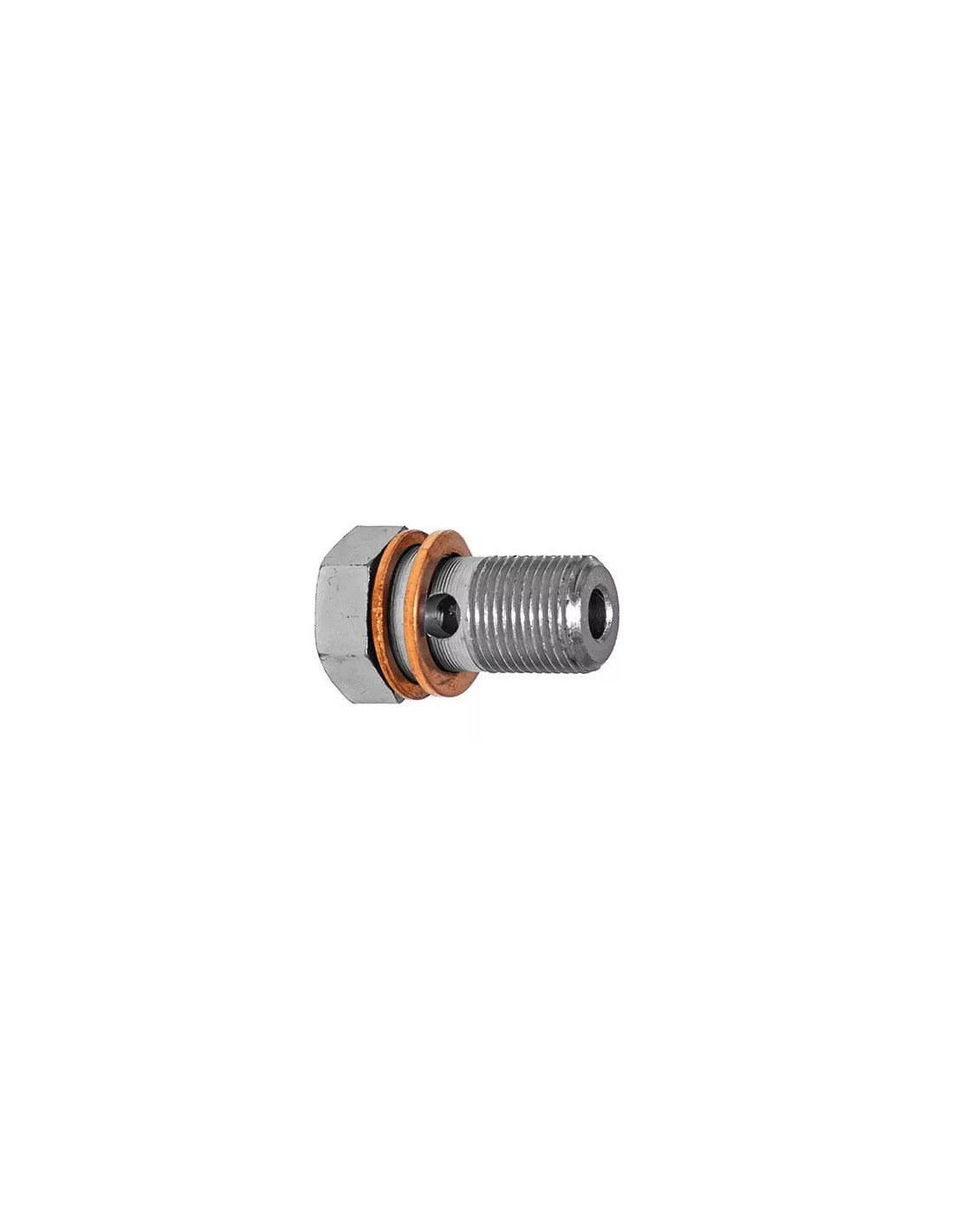 Tornillo banjo de acero para banjo con métrica de 12x100 con dos arandelas.